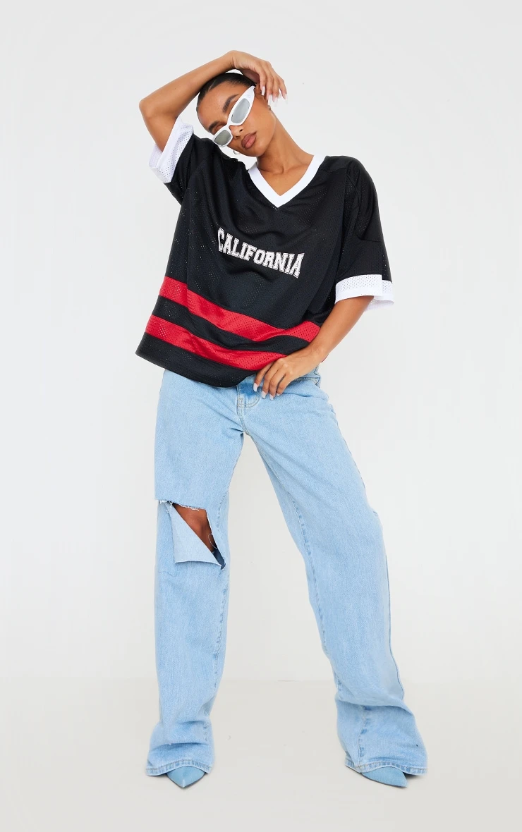 Add a little edge to your outfit of the day with this black California short sleeve mesh t shirt, you’re sure to be nailing major trends whatever the occasion. This tee includes a black mesh material with a contrasting ‘California’ print and short sleeves, it’s a definite yes from us. Team this mesh t-shirt with wide leg blue jeans, your fave heels and statement accessories for the ultimate chic finish, what are you waiting for doll?