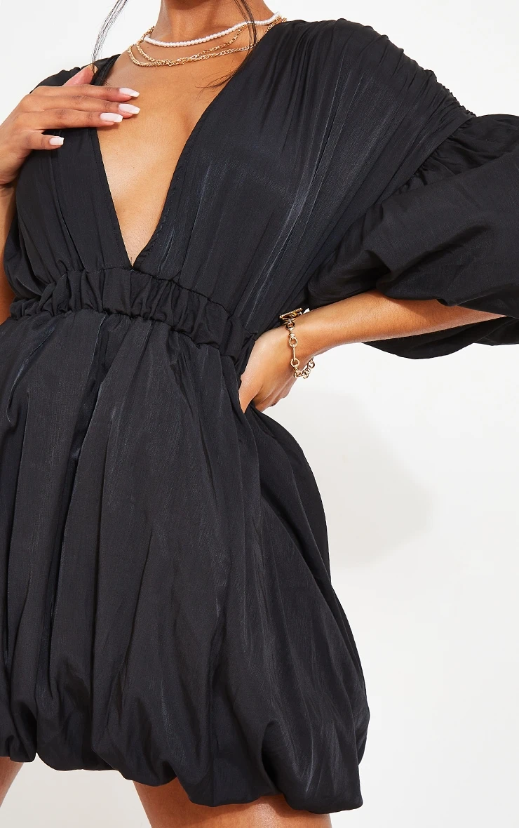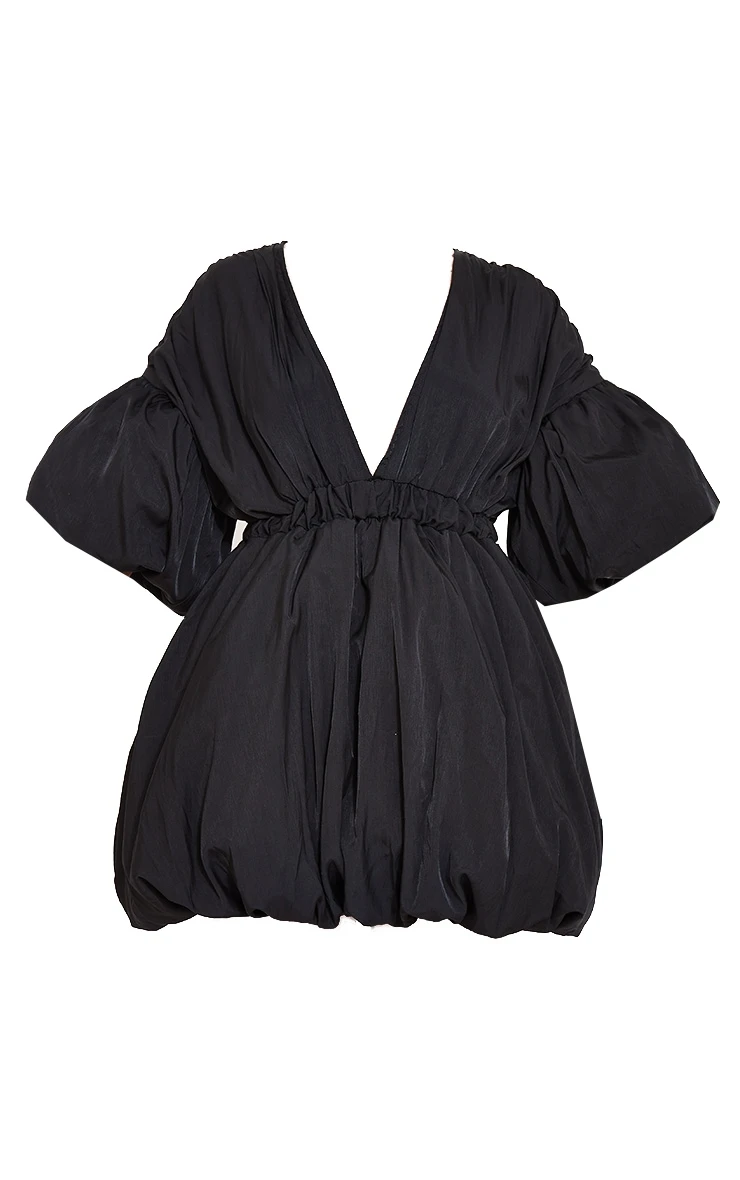Add some drama to your new season look with this shift dress. Featuring a black material with puff sleeves and a puffball hem design. Team this effortlessly with slides and a shoulder bag for an insta-worthy vibe.