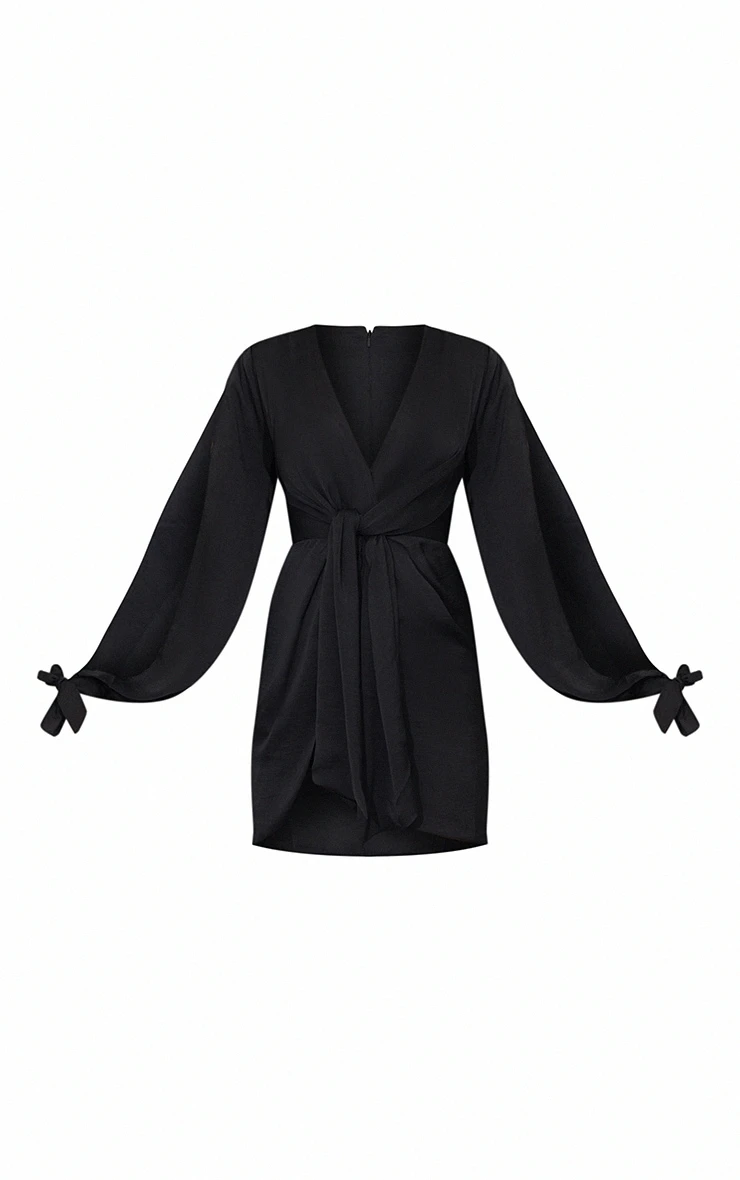This LBD is your new weekend saviour doll. Featuring a black satin fabric with a twist front wrap design and an open sleeve detail, we love this teamed with heels and a clutch bag for an all-black look.