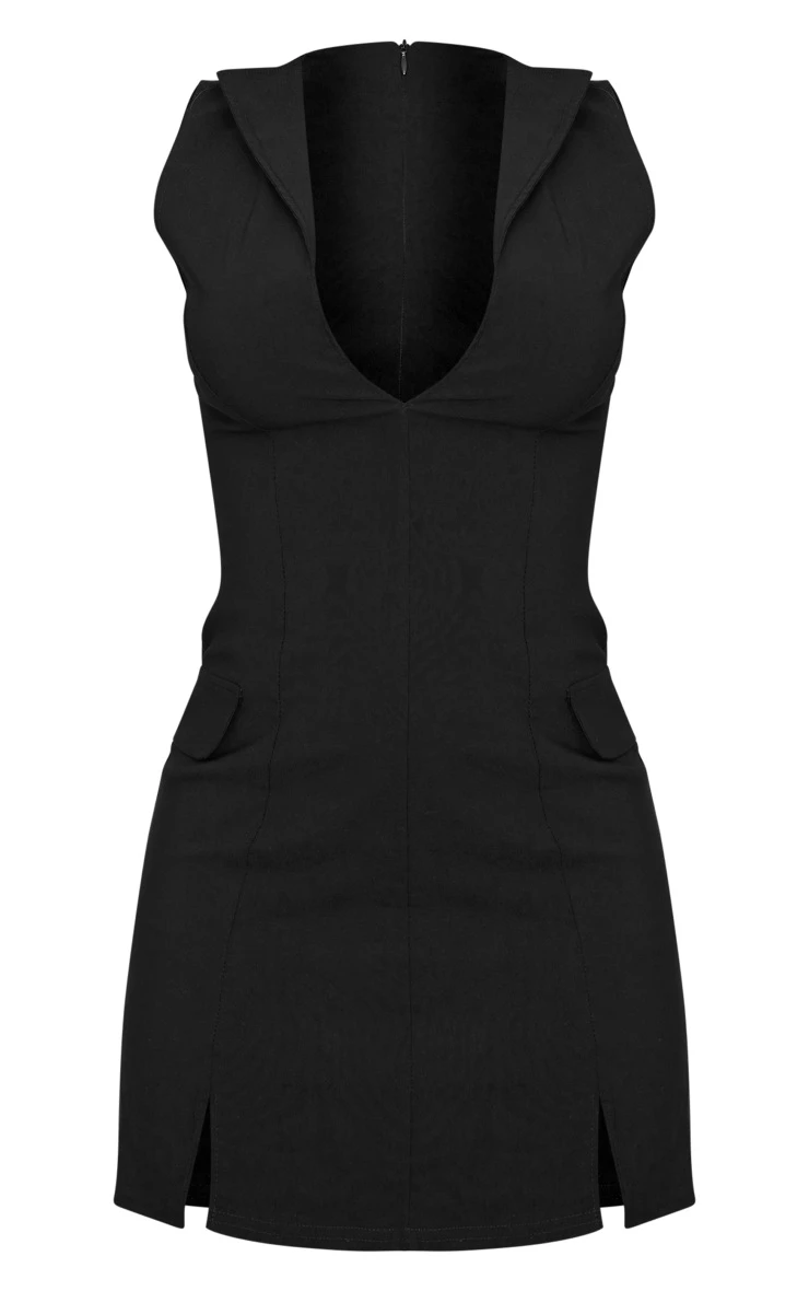 Channel the perfect ‘little black dress’ look with this black sleeveless pocket detail plunge neck bodycon dress. Made from a black material with a figure-flattering bodycon fit, this sleeveless dress is sure to have all eyes on you doll. With a plunging neckline and a pocket detail, what more could you want? Style this black dress with heeled boots and your fave accessories for chic look that is perfect for a night with the dolls.