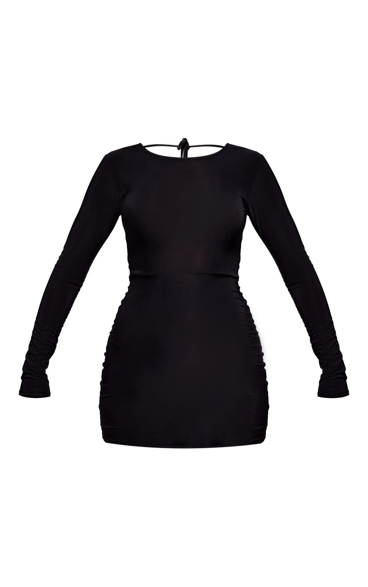 Looking for the perfect piece to bring all the drama to your weekend wardrobe? Then this black slinky backless tie detail long sleeve bodycon dress is sure to be at the top of your wish list. This dress features a black slinky material with a backless design, a tie detail and long sleeves. This figure-worshipping dress is sure to help show off your luxe side. Pair this dress with over the knee boots and your fave accessories for a flawless finish.