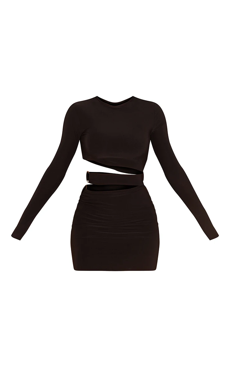 Update your staple little black dress with this one doll. Featuring a black slinky material with a cut out waist design, ring detail and a bodycon fit. Just add heels and your fave accessories for a chic fit that will have heads turning.