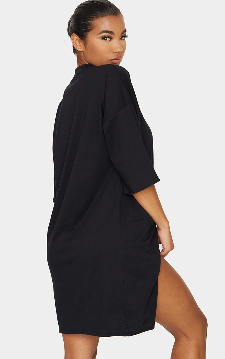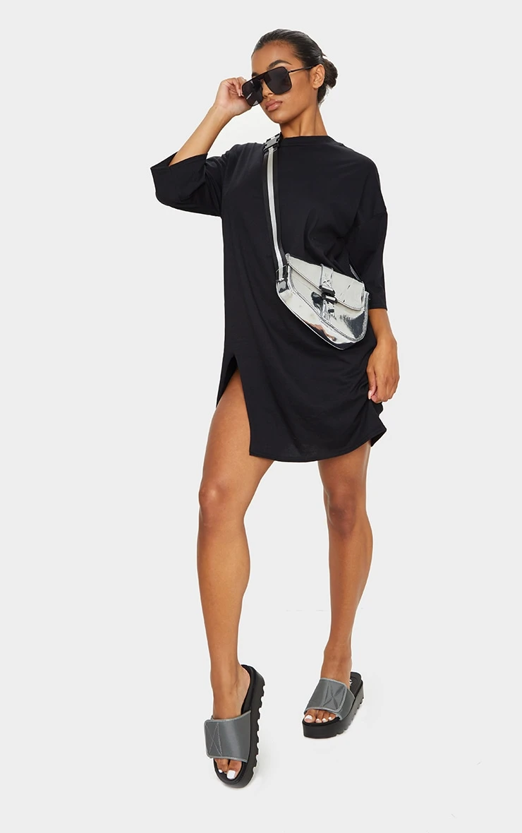 This t-shirt dress is perfect for looking effortless doll. Featuring a black fabric with an oversized boyfriend fit and a split detail, team this with sliders and a cross body bag to complete the look.