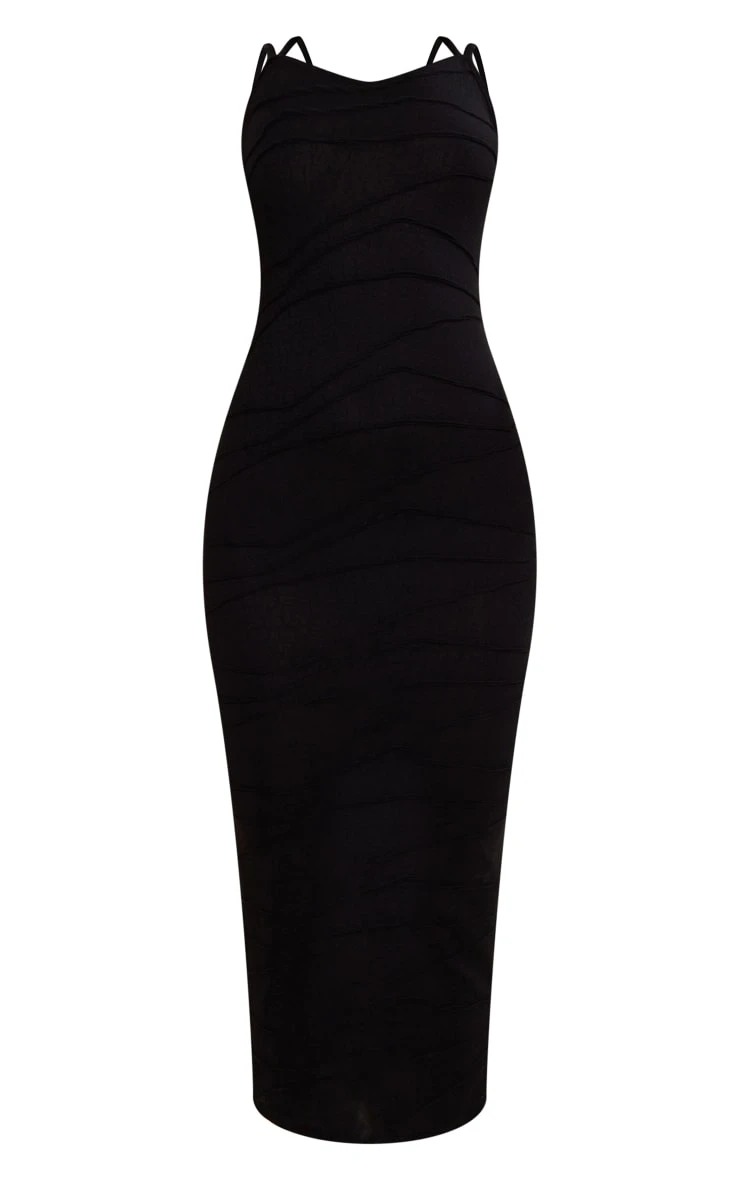 Meet your new season wardrobe staple piece with this black textured double strap midaxi dress, you’re sure to take your day to night look to a whole new level. It is made with a black textured material with a double strap design and a midaxi length, how could you say no? Pair this dreamy piece with platform sandals and gold accessories for a chic, everyday look, or just add your fave heels for the perfect weekend-ready fit.