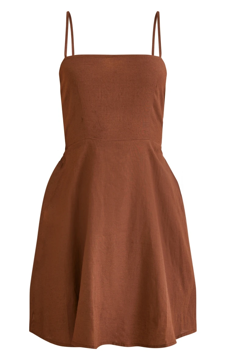 Enter the new season in style with this chocolate straight neck linen look ruched back detail swing dress. Figure-flattering in all the right places, this dress is sure to be your new staple doll. Made from a chocolate hue linen look material with a straight neck design, ruched back detail and a swing style, what’s not to love? Stay on-trend and pair this dress with western style boots for a fierce finishing touch.