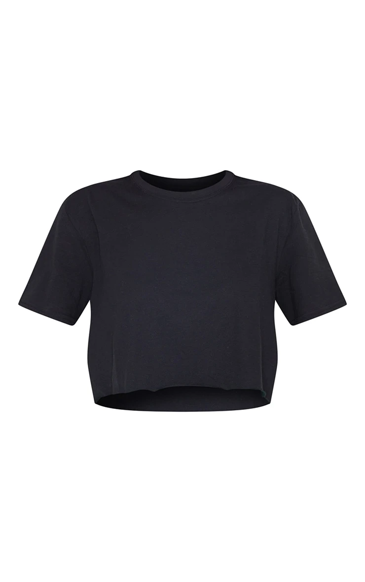 We are loving this crop top for your everyday wardrobe. Featuring a black organic material with short sleeves and a cropped length, we are in love. Wear with comfy bottoms and chunky kicks for a catch up with the dolls.