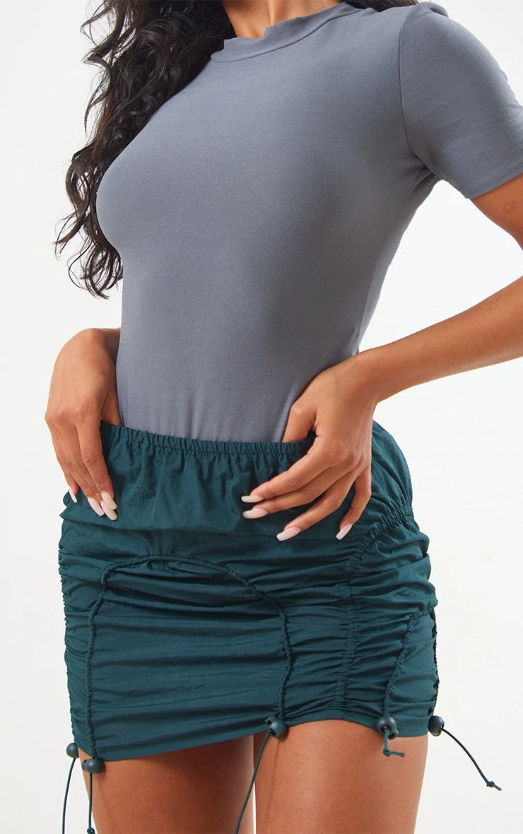 When the weekend calls for a little attitude this dark green parachute toggle hem mini skirt is sure to earn you all the likes. It is made using a dark green material with a toggle hem design and a mini length, what’s not to love? Whether you’re getting ready for a night with the dolls or want to amp up your off-duty look this mini skirt is sure to tick all the boxes. Team it with a short sleeve tee, your fave heels and a clutch bag for a simple but chic weekend fit.