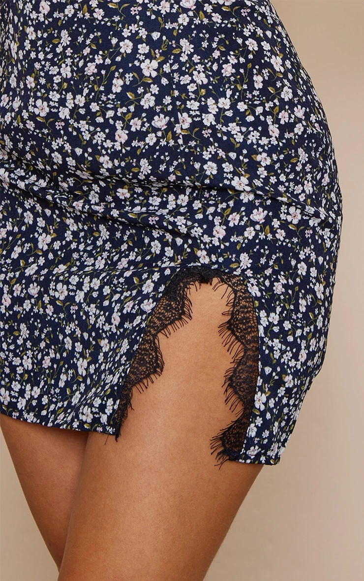 Step out in style this weekend with this navy ditsy print lace detail trappy shift dress. This shift dress is just what you have been searching for ready for the new season. Its navy ditsy print gives your look a delicate touch whilst its lace detailing and strappy design is super chic. Take your look to the next level with heeled mules, minimal accessories and a shoulder bag.