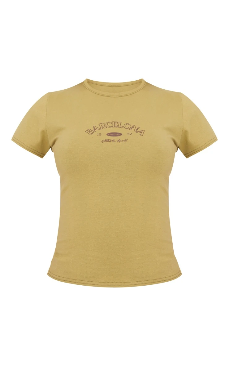 Take your off-duty vibe to new heights with this olive barcelona print fitted long t-shirt. Its olive hue material features a ‘Barcelona’ print which adds that extra edge to your look. With a fitted and versatile design, this long t-shirt is the ultimate styling staple this season and you won’t want to miss out. Team with tailored trousers, chunky trainers and a baseball cap for the perfect off-duty combo.