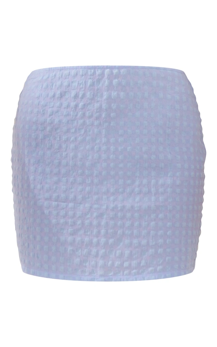 Add some chic vibes to your weekend wardrobe with this pale blue gingham seersucker mini skirt. This unreal skirt is brought to you in a pale blue material in a gingham seersucker design that is sure to amp up any outfit of the day. This day to night look can be styled with the matching top and some comfy sandals to finish off the look that will have you feeling glam.