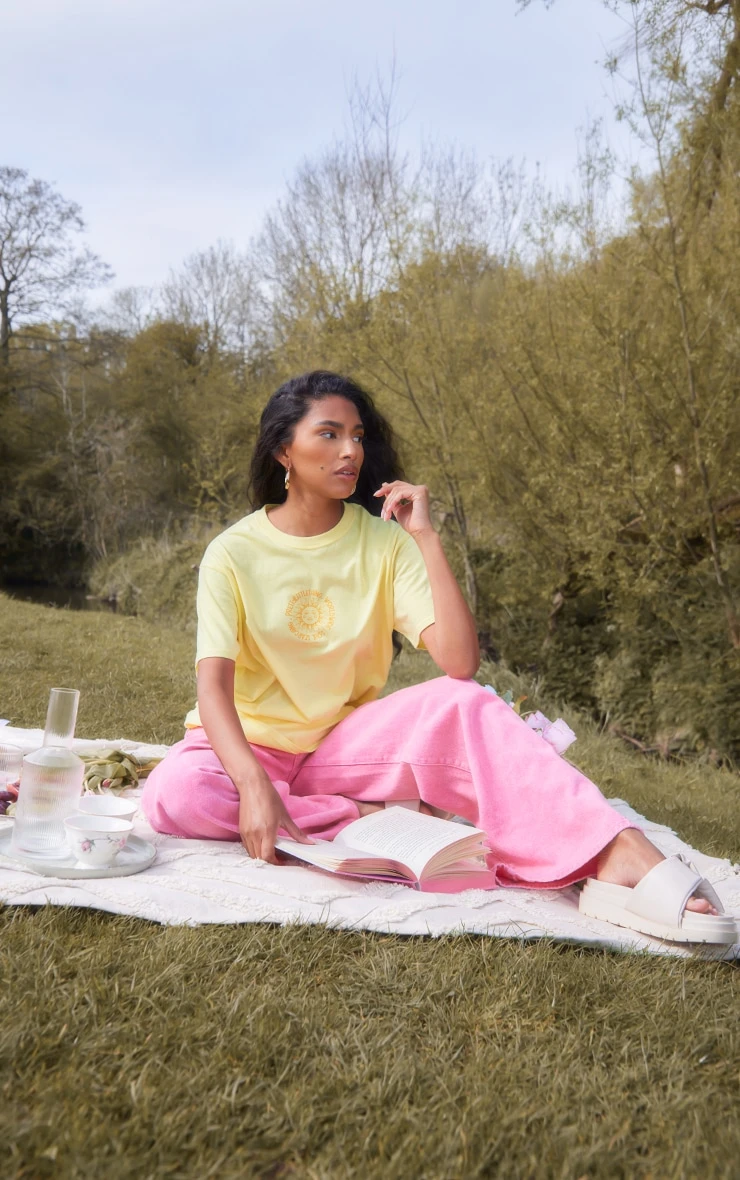 Your new season wardrobe is in need of some bold hues doll and we’ve got you covered with this PrettyLittleThing lemon soul searching print t-shirt. Brought to you in a dreamy lemon hue material with a ‘Soul Searching’ printed design and a ‘PrettyLittleThing’ logo, what more could you want? Style this printed tee with bold hue jeans, fresh kicks and sandals for an off-duty look that is sure to get you noticed.