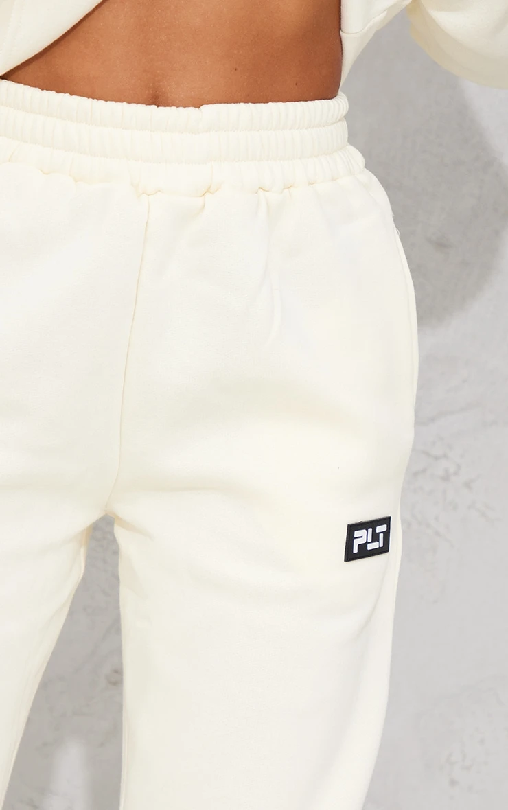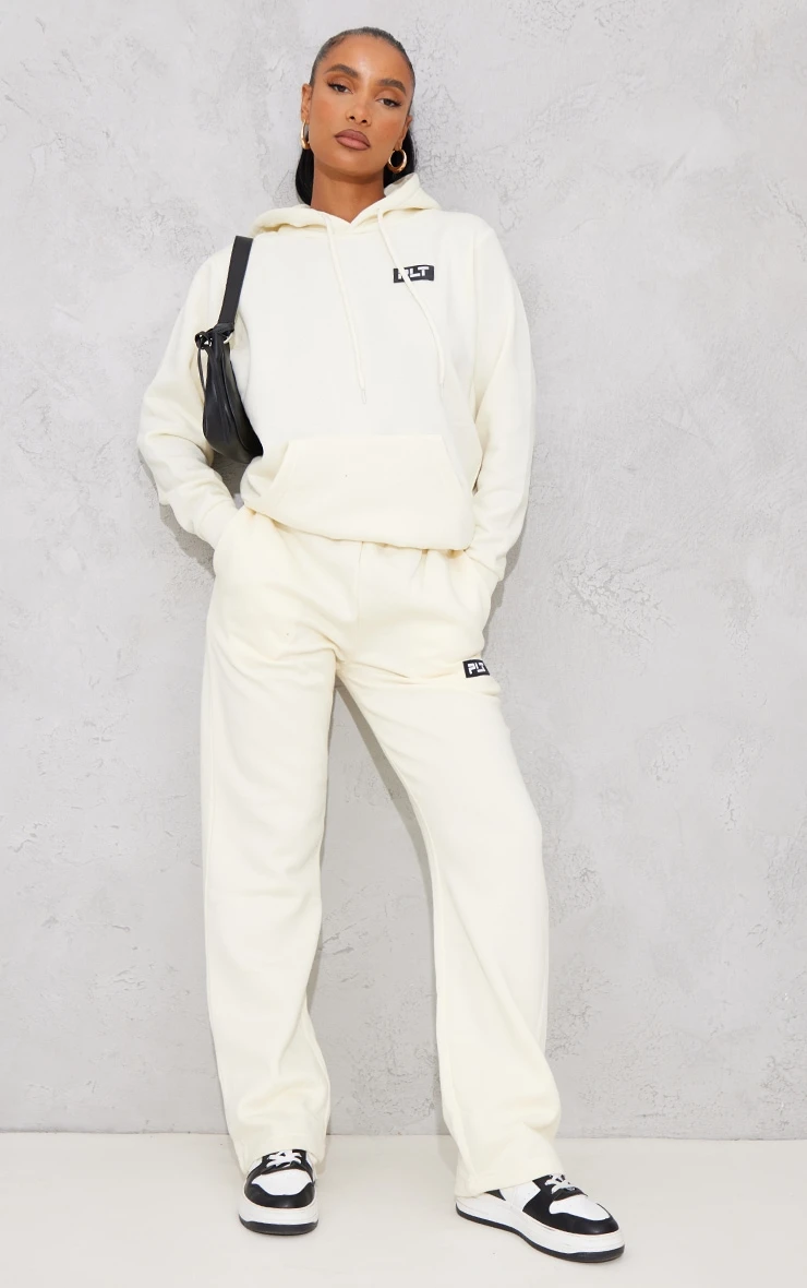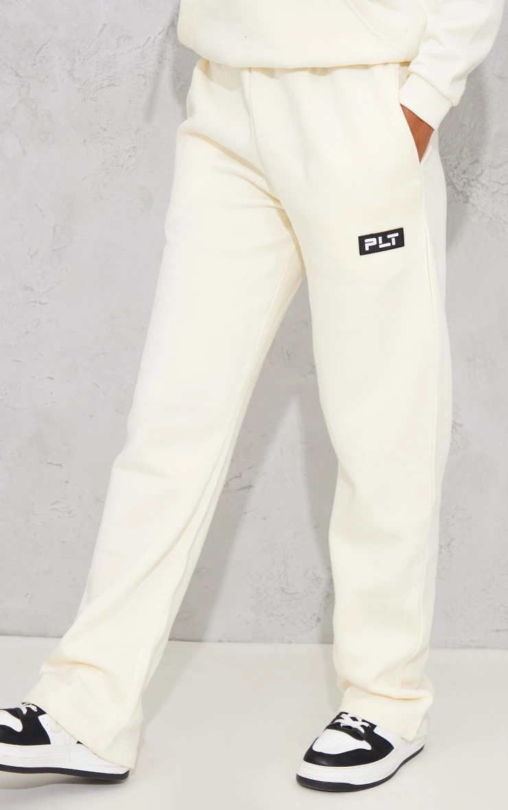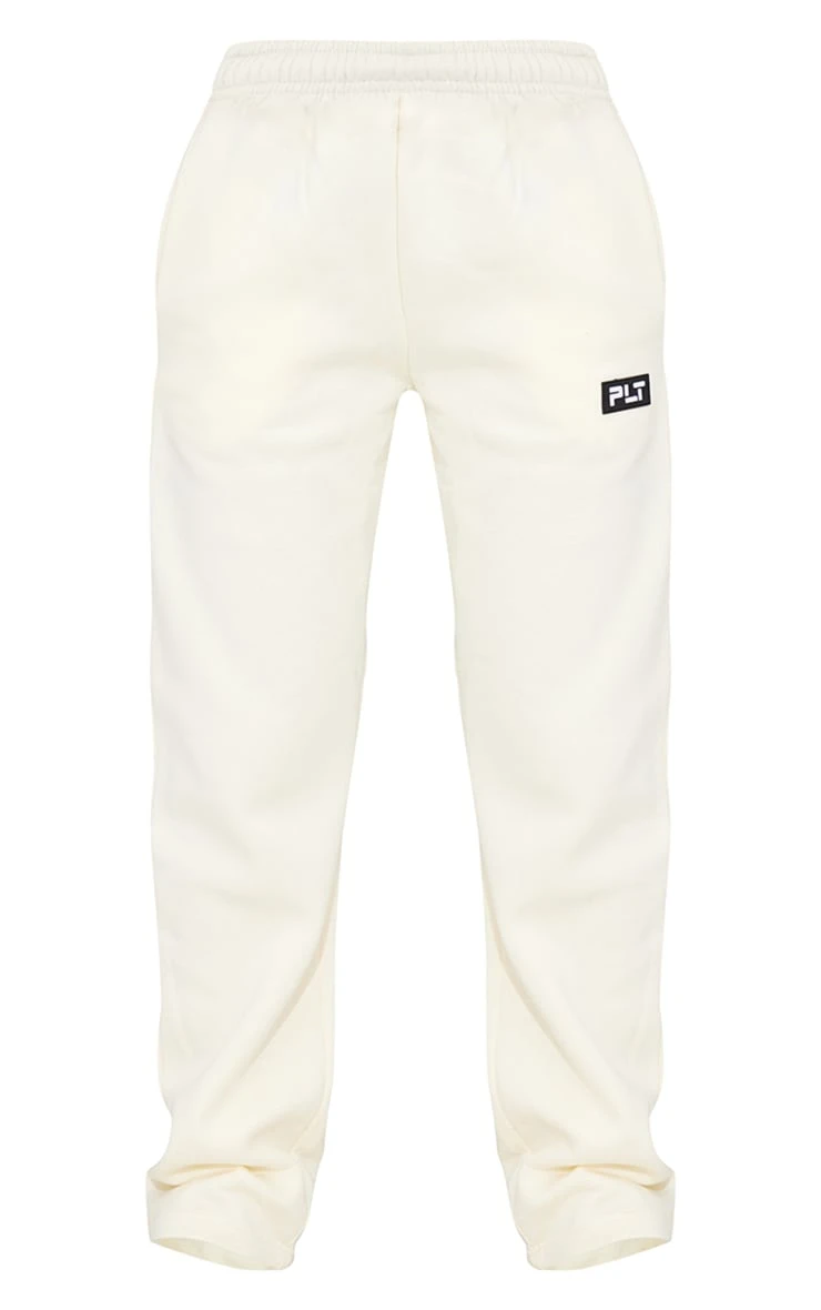 Give your off-duty look a fresh new update with these bottoms doll. Featuring a cream material with a ‘PrettyLittleThing’ badge detail and a straight leg fit. We love this teamed with the matching hoodie and some fresh chunky kicks.