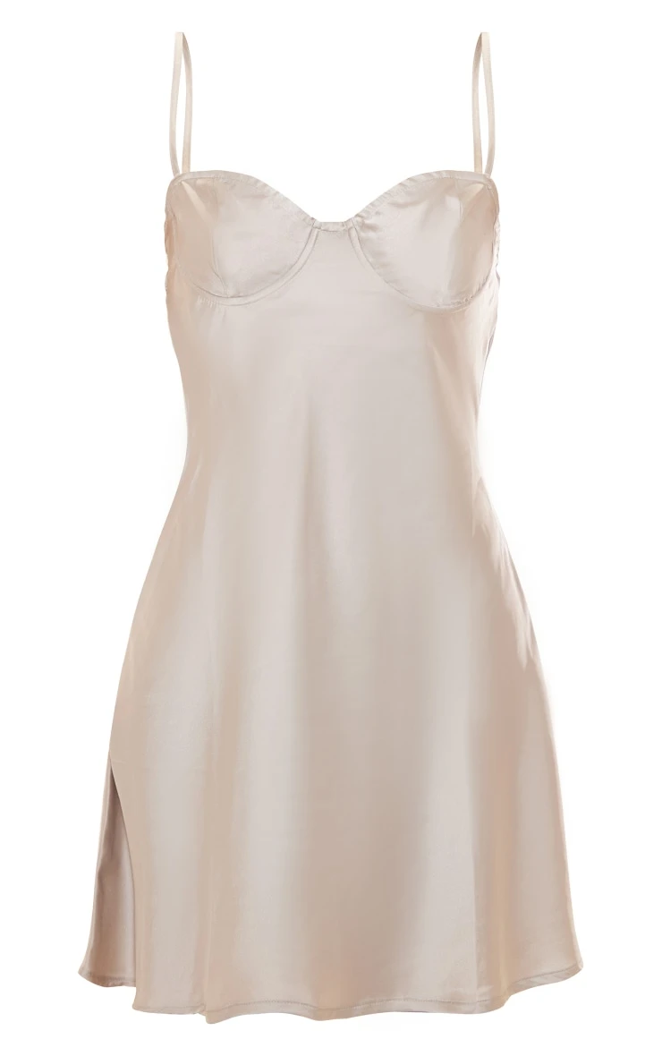 Channel all the glam vibes into your new season wardrobe with this silver satin underwired back strap detail shift dress. It is perfect for your next big event doll, what are you waiting for? This shift dress includes a silver satin material with an underwired design and a back strap detail, what’s not to love? Team this women’s satin dress with clear slip-on heels and simple accessories for a dreamy date night fit.